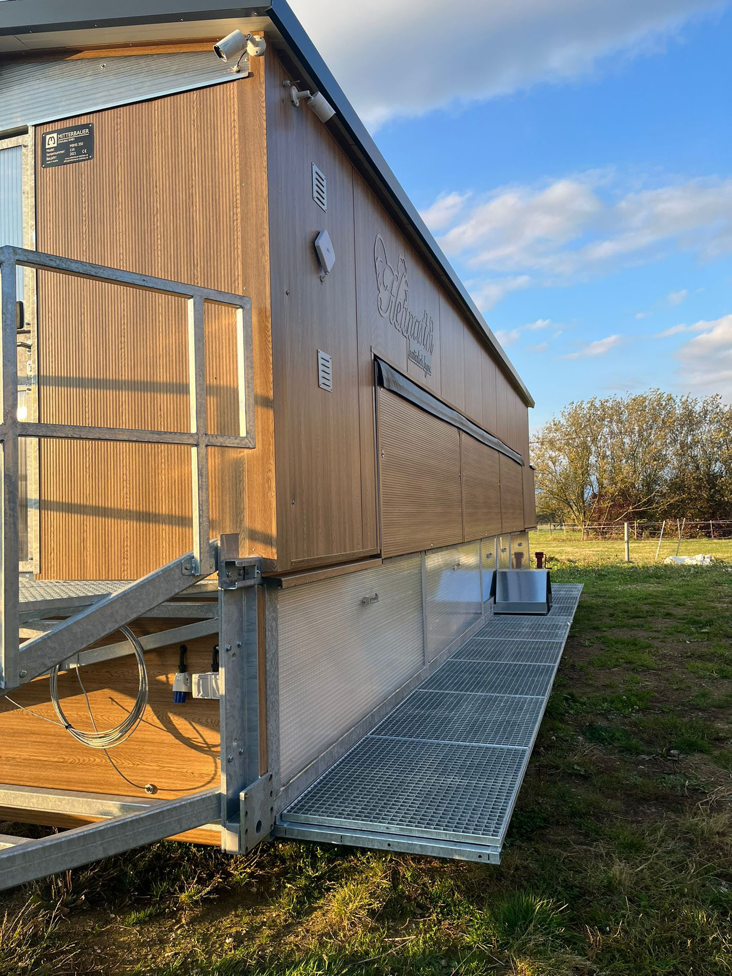 Smarte Loxone-Steuerung, flexible Standortwechsel und höchste Tierwohlanforderungen sind nur einige Besonderheiten vom mobilen Hühnerstall von Mitterbauer Stahlbau in Handenberg!