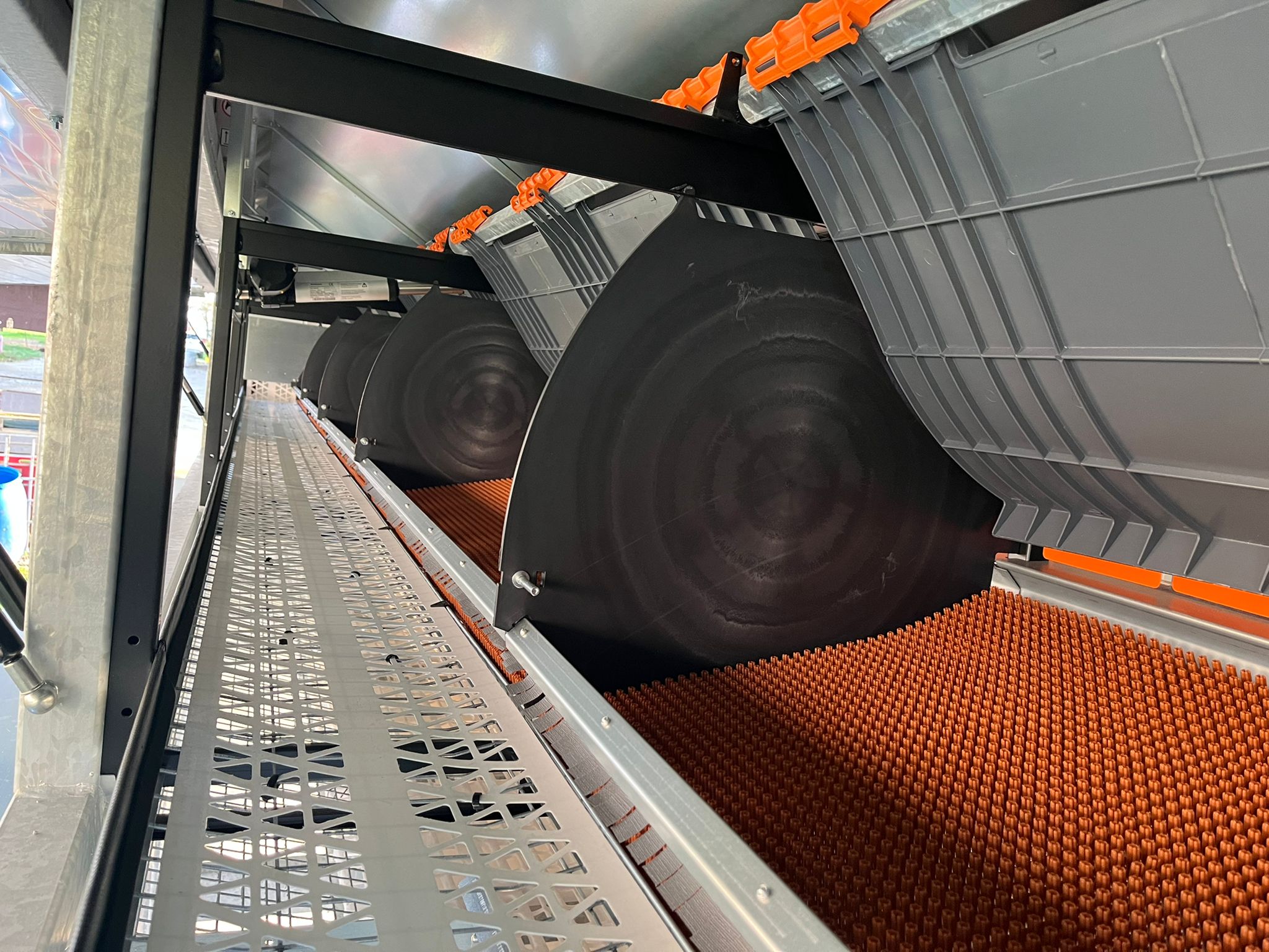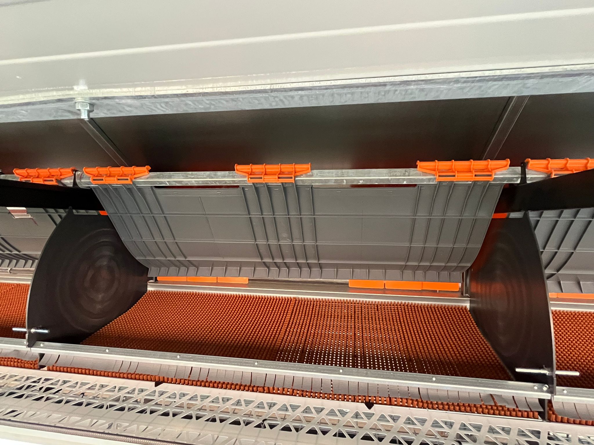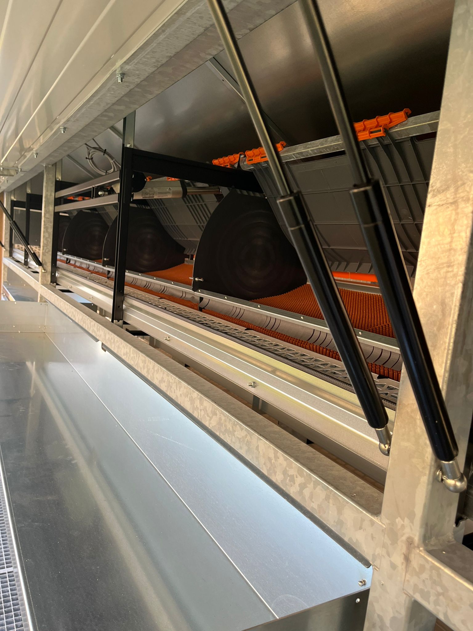 Die Legenester sind von außen über Klappen zugänglich. Auszüge unter den Nestern und die nach oben schwingenden Klappen schützen Sie bei der Abnahme der gelegten Eier vor Regen, Schnee und Wind. Ab dem Modell MBHS 430 wird ein Eierband verbaut. So können die Eier direkt im wettergeschützten Vorraum eingesammelt werden. Durch Auszüge unter den Nestern und die nach oben schwingenden Klappen sind Sie auch bei Schlechtwetter bei der Ei-Abnahme gut geschützt.